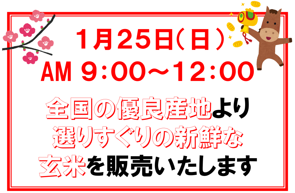 2026年第1回目の蔵出し玄米販売を1月25日(日)AM9:00~12:00で実施いたします。