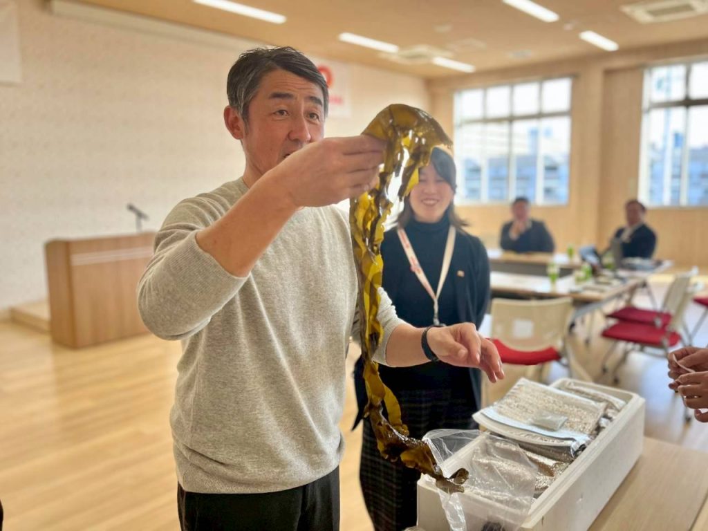 今朝とれたばかりの新鮮で絶品ななわかめをいただきながら、皆で意見を出し合いました。
